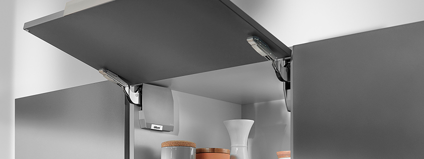 Плавное и бесшумное комфортный доступ к внутренним пространствам модулей хранения – все это Blum AVENTOS HL top.