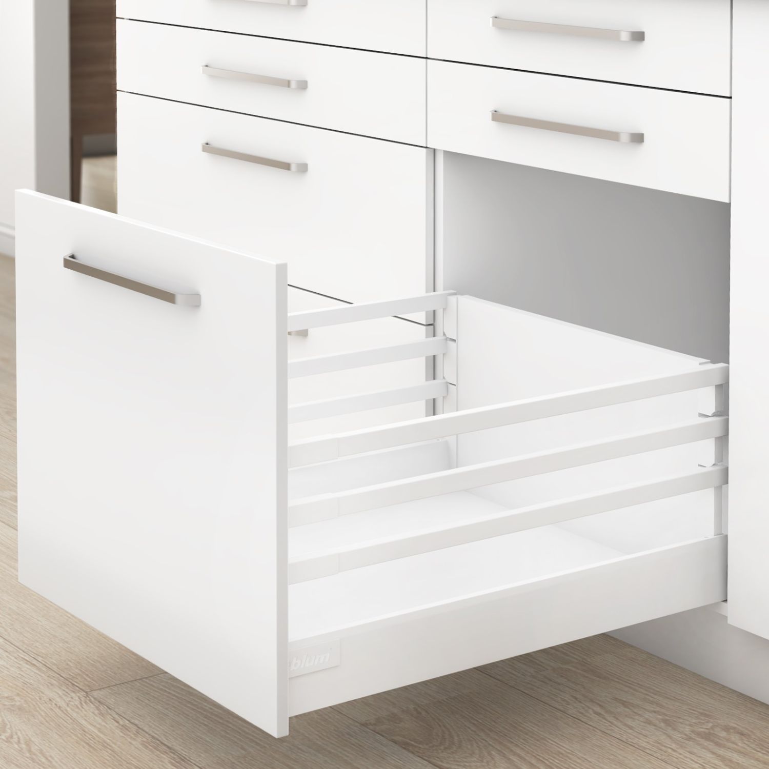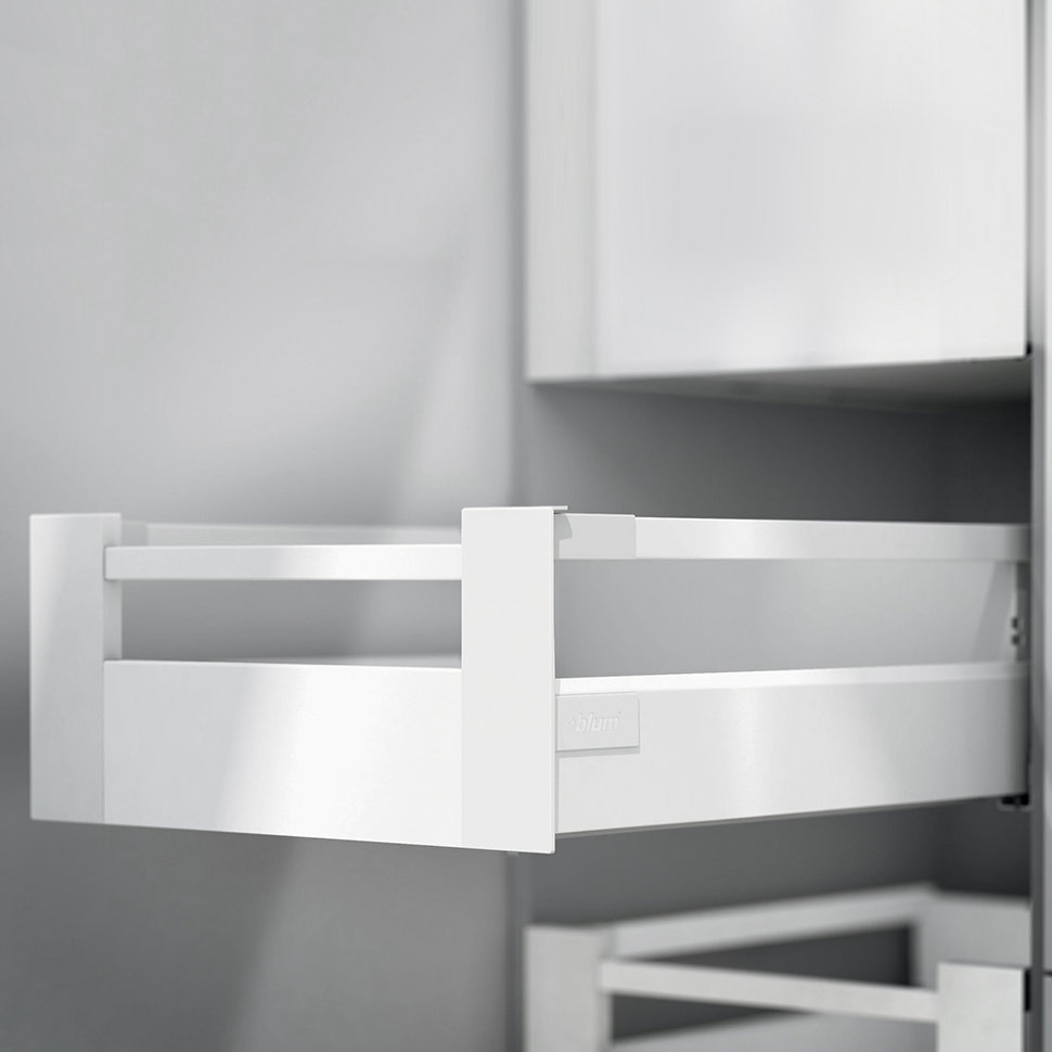 Tip-on blumotion* Ящик с высоким фасадом ANTARO Царга "М" высота "C" (196мм)1 релинг, белый ш,*270мм