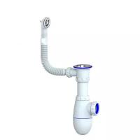 Сифон одинарный 1 1/2" для мойки с отводом для стиральной машины с круглым переливомЮНИКОРН ВЫВОД