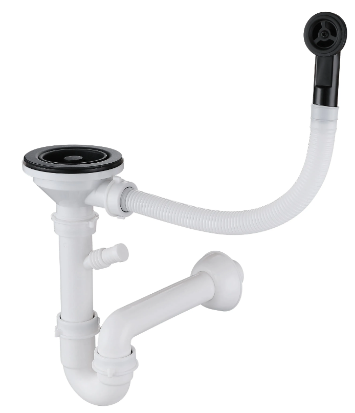 GRANFEST Сифон двойной 3 1/2" черный с круглым переливом и отводом арт. GF-12G14PB4-P2A черн