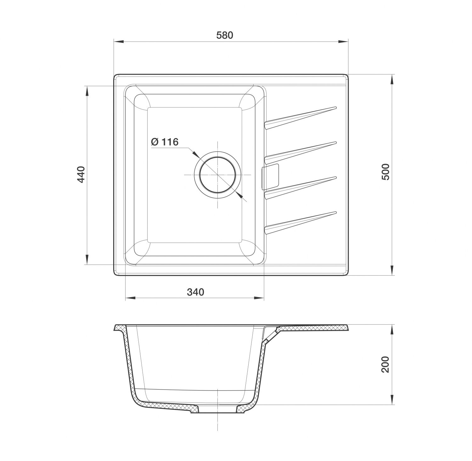 Ширина мойки, мм: 580
