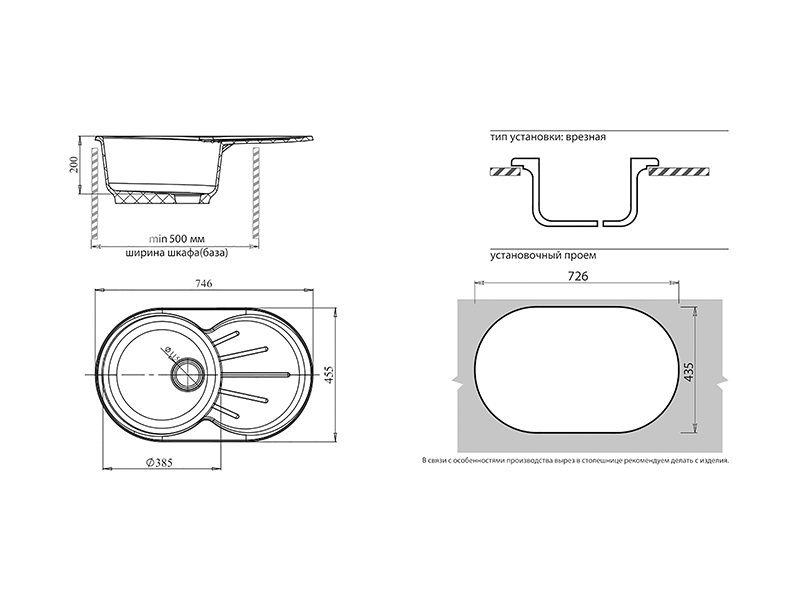 Установочный проем: 726х435 мм
