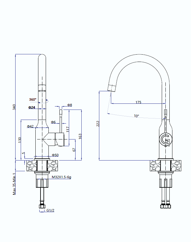 Высокий поворотный излив для удобного наполнения кастрюль и вазКод товара: